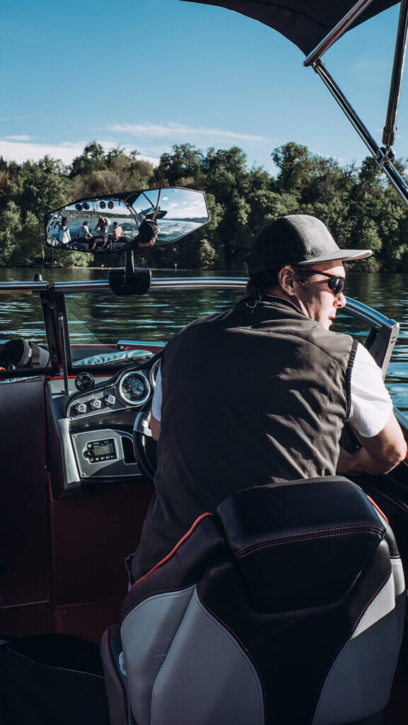 Wir sind die 1. Motorbootschule in der Schweiz die auf einem Mastercraft mit Schlechtwetterverdeck Unterricht gibt. Schlechtwetterverdeck, Heizung und Scheibenwischer bieten Ihnen bei jedem Wetter komfortable Bedingungen – auch im Winter.
